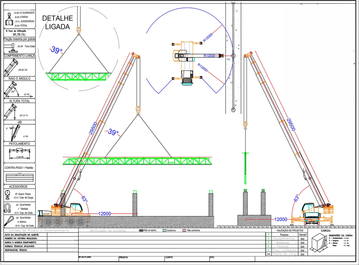 Nos tempos atuais, o projeto para içamento de uma determinada carga é fundamental para o sucesso da atividade de elevação e movimentação, uma vez que este estudo traz consigo informações valiosas, detalhes técnicos de grande importância na operação dos equipamentos envolvidos nos içamentos das cargas, memoriais de cálculos e descritivos técnicos dos procedimentos dos manuseios das cargas.